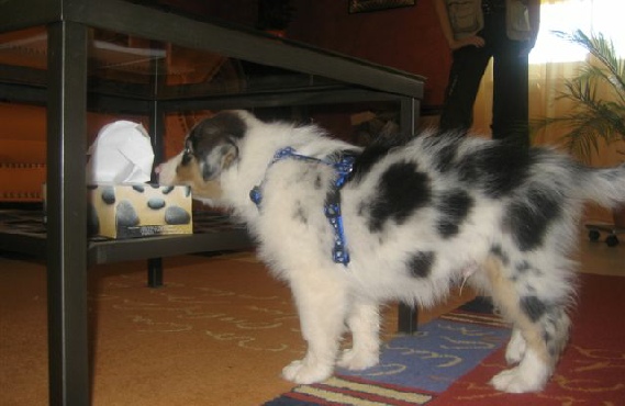 Mein richtiger Name ist übrigens: Burn It Blue von Rafter Creeks. Ich bin ja auch ein reinrassiger Australian Shepherd. Den Namen Face, hat mir Patrick (Frauchens Sohn) gegeben und zwar erst an dem Tag, als sie mich endlich nach Hause holten .